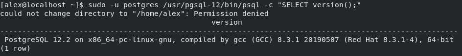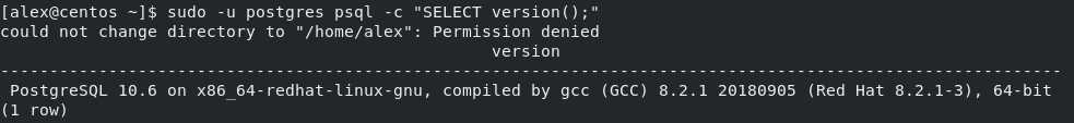 Говорит о том, что пользователь ‘postgres’ (который был создан автоматически с сервером PostgreSQL) не имеет прав на указанный каталог для создания файла .psql_history. В рамках примера эта ошибка не критична и может не отображаться вовсе, если вы выполняете команду не из домашнего каталога. Если, в последующем, она у вас так же появится, нужно будет добавить права на исполнение (‘x’) этой директории.