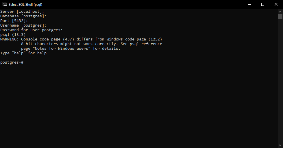 После завершения установки ты сможешь запустить SQL Shell, поставляемый с Postgres.
