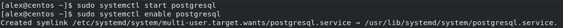 Для работы PostgreSQL нужно запустить демон и я рекомендую включить автоматический запуск, что бы после перезагрузки он запускался автоматически. Это делается следующей командой: