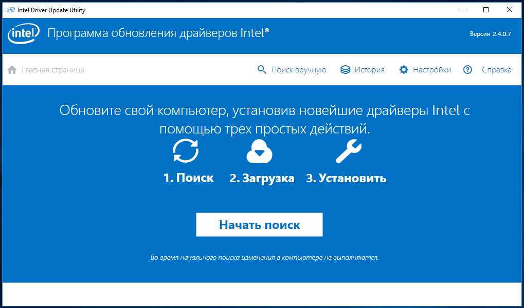 Затем переходим по адресу www.intel.ru/content/www/ru/ru/support/detect.html, скачиваем программу для поиска и обновления драйверов Intel, устанавливаем и запускаем её.