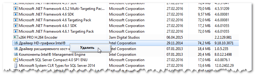 Решение, однако, не самое оптимальное, так как оно не затрагивает корень проблемы — глючный драйвер . Если его заменить, исчезнет и ошибка. Удаляем драйвер графики Intel через стандартный раздел панели управления «Программы и компоненты».