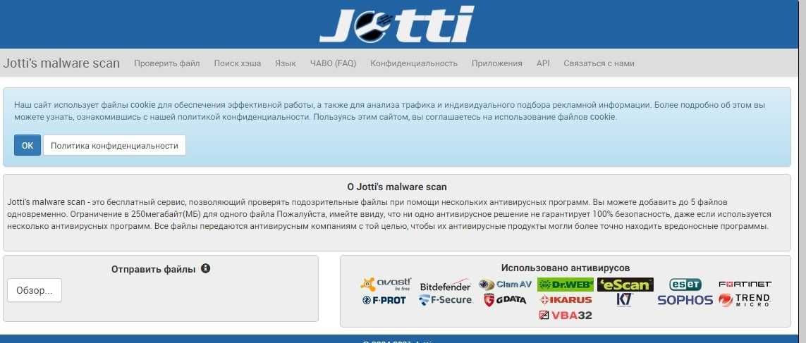 Отличный бесплатный облачный антивирусный сканер, работающий на нескольких антивирусных движках.