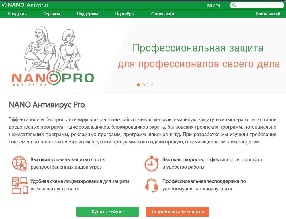 Достоинства NANO Антивирус: