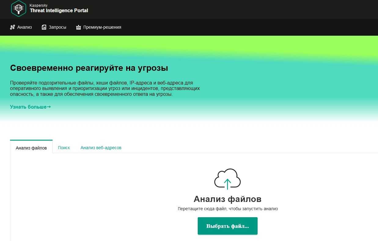 Это онлайн-сканер, который долгое время применялся для проверки файлов и веб-адресов. Сервис работал на основании собственной постоянно обновляемой вирусной базы и использовал свою облачную технологию Kaspersky Security Network. Сканер анализировал файлы весом до 50 Мб.