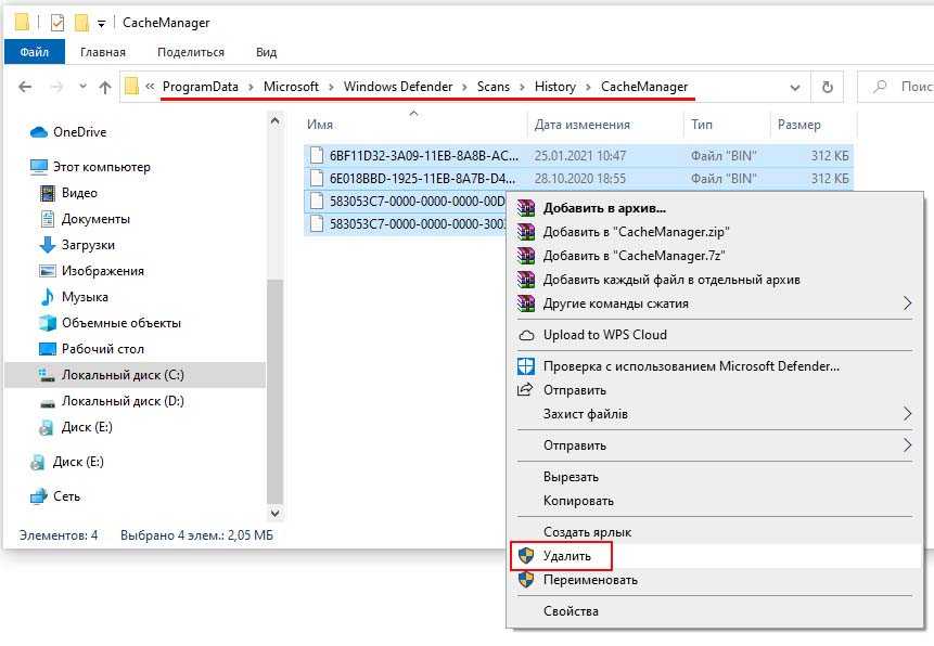 Выделите все содержимое папки Service сочетанием клавиш Ctrl + A, щелкните правой кнопкой мыши и выберите «Удалить».