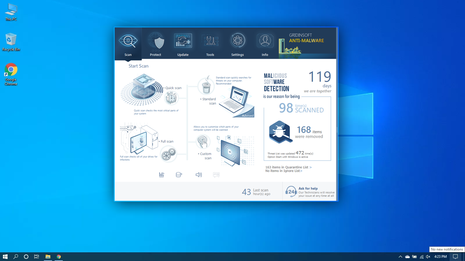 Regardless of the kind of trouble with your PC, the initial step is to check it with Gridinsoft Anti-Malware. This is the best app to spot and also cure your PC. However, it’s not a straightforward antivirus software. Its objective is to combat modern dangers. Now it is the only product on the market that can merely clean up the PC from spyware as well as other infections that aren’t also identified by routine antivirus software programs. Download and install, install, and also run Gridinsoft Anti-Malware, after that check your computer. It will direct you through the system cleanup procedure. You do not have to acquire a certificate to clean your PC, the first permit provides you 6 days of a completely cost-free test. Nevertheless, if you wish to safeguard yourself from permanent threats, you most likely need to think about buying the permit. By doing this we can guarantee that your system will no longer be contaminated with viruses.