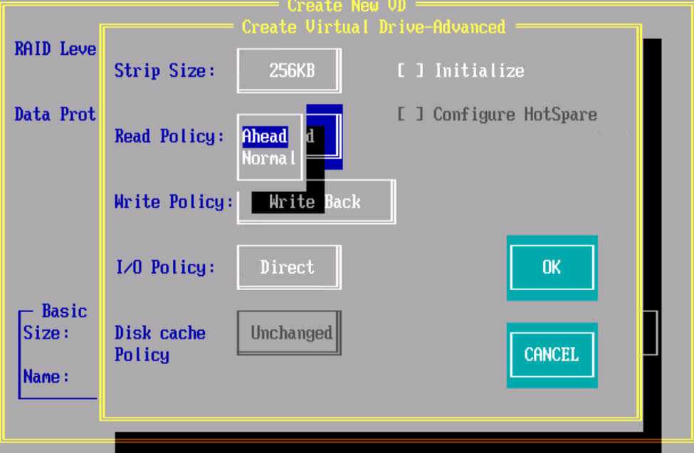 Политика Read Ahead Policy: При ее включении контроллер начинает считывать последовательно сектора на диске, находящиеся за сектором с которого извлекается информация. При низкой фрагментации данная политика позволяет увеличить скорость чтения. Каждая операция чтения будет потреблять больше ресурсов жесткого диска, но если запросы на чтение последовательные это может существенно уменьшить количество запросов на чтение на жесткие диски и может существенно повысить производительность. Этот параметр будет работать только если типичный размер запроса на чтения меньше, чем ширина полосы пропускания.