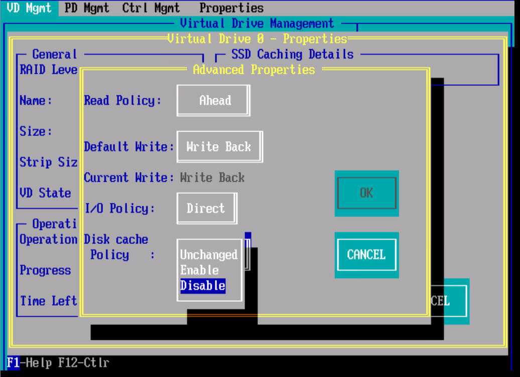 Disk cache policy: это политика кэша диска. Если ее включить то на дисках будет храниться дополнительный кэш, это будет влиять на скорость записи в худшую сторону, но будут быстрее считывание, так же при включенном режиме есть риск потери данных.