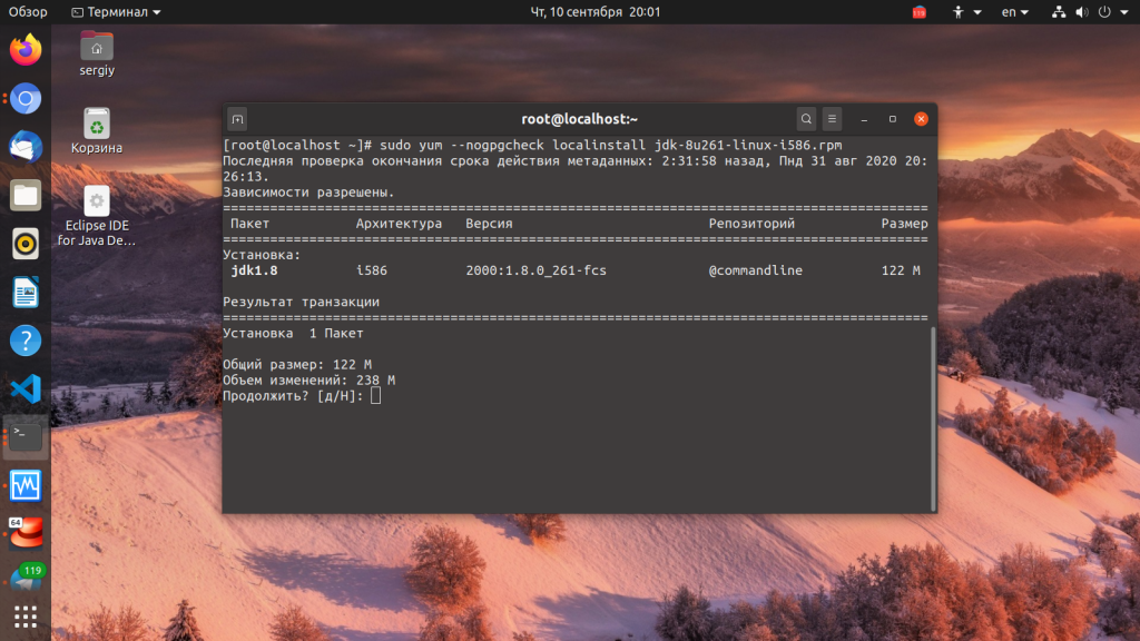 Первая опция отключает проверку GPG ключа, а вторая говорит, что мы будем выполнять установку локального пакета. В Fedora, с помощью dnf все делается еще проще:
