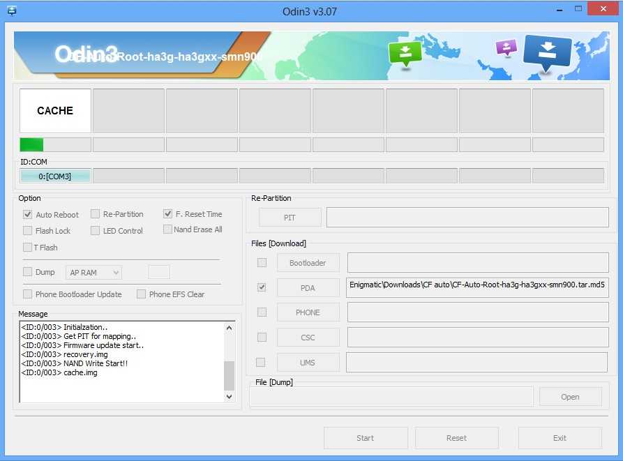 3. Запустите Odin, в левом верхнем углу должно появится окошко что устройство подключено