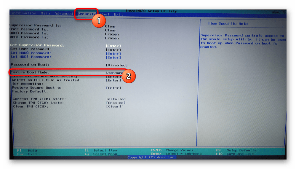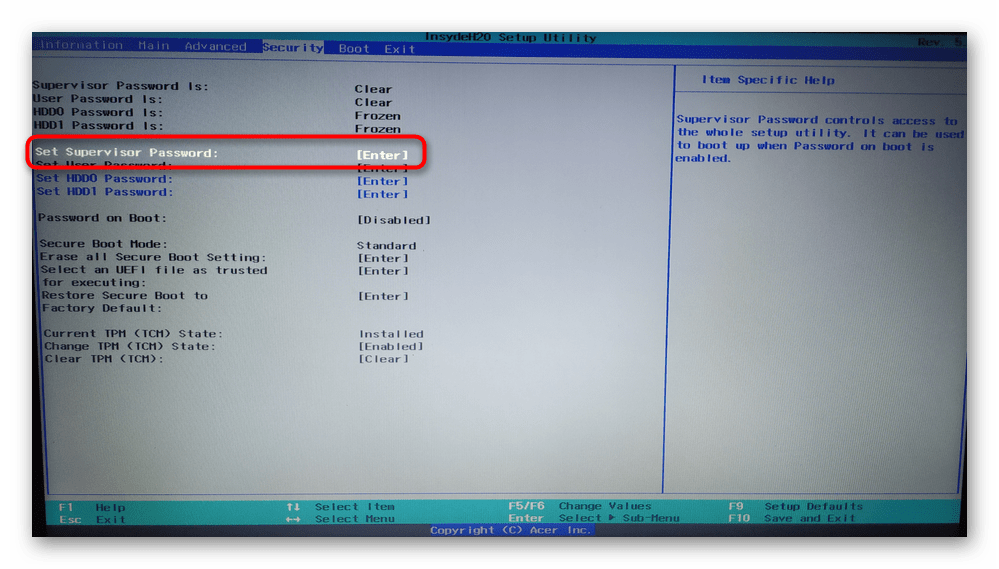 Как отключить Secure Boot на ноутбуке Acer Aspire. Как убрать пароль на БИОС ноутбука Acer