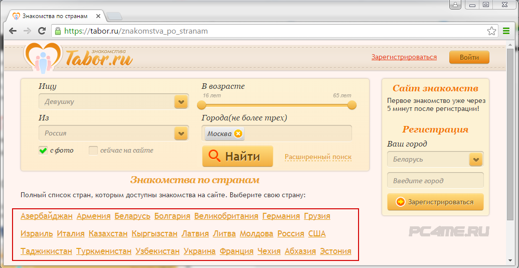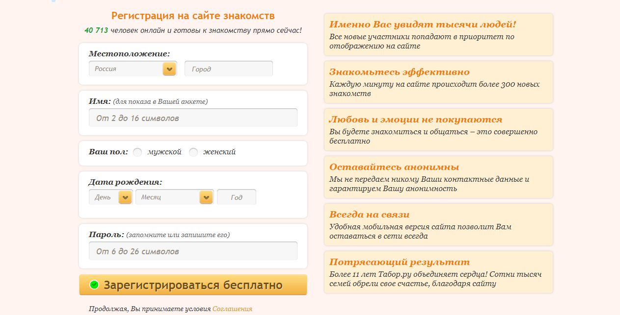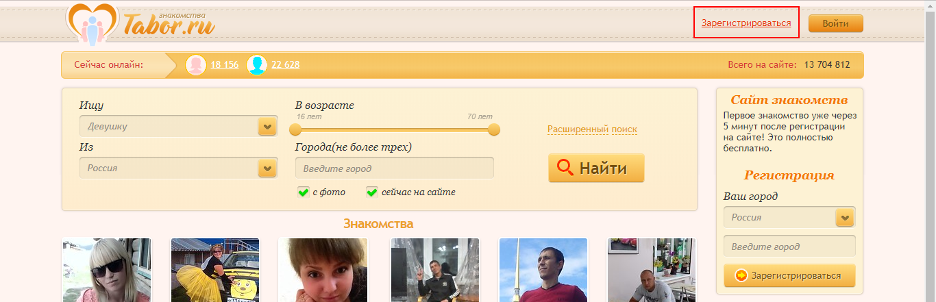 Регистрация на сайте знакомств Табор.ру (бесплатно)