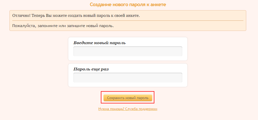 Придумайте надежный пароль и введите его в соответствующую графу. Следующим шагом станет повторение нового пароля. Внизу появится кнопка «Сохранить новый пароль», которую нужно нажать.