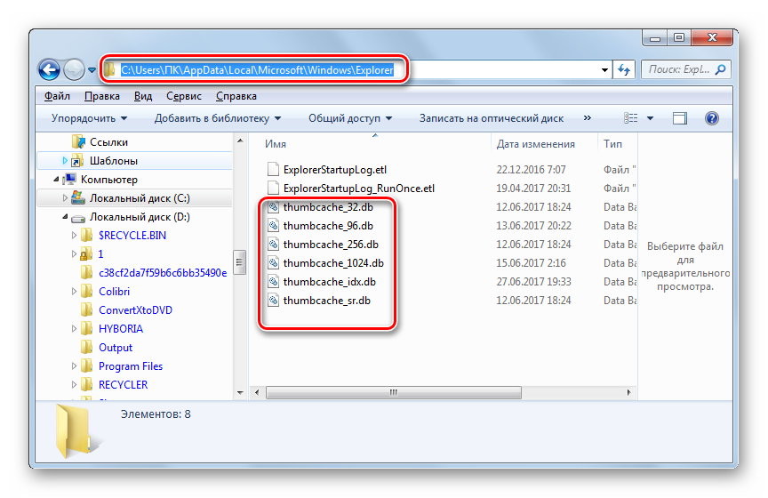 Для перехода вместо значения «наименование_профиля» следует подставить конкретное имя пользователя системы. В данной директории находятся файлы группы thumbcache_xxxx.db. Они и являются аналогами объектов Thumbs.db, которые в ранних версиях ОС размещались во всех папках, где имелись картинки.