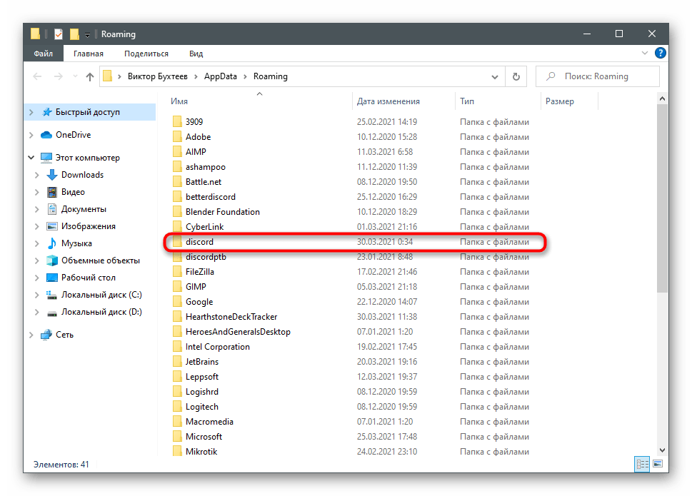 Здесь тоже стоит устранить все каталоги, содержащие в названии слово «Discord». Если ничего такого не обнаружите – значит всё нормально. В обратном случае, после чистки нужно обязательно перезапустить систему.