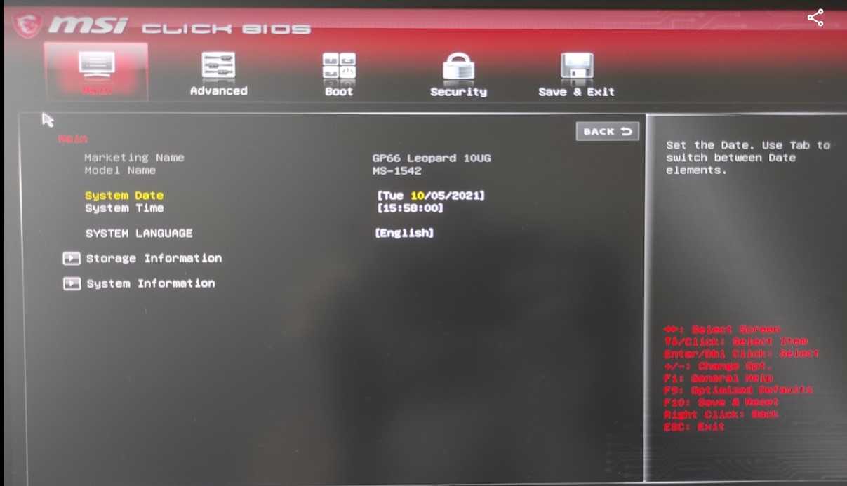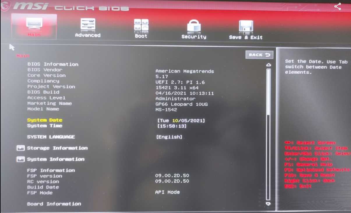 - Переходим в BIOS (обобщим этим названием без придирок). На моем MSI GP66 – клавиша Delete при загрузке системы. Видим подобную картину: