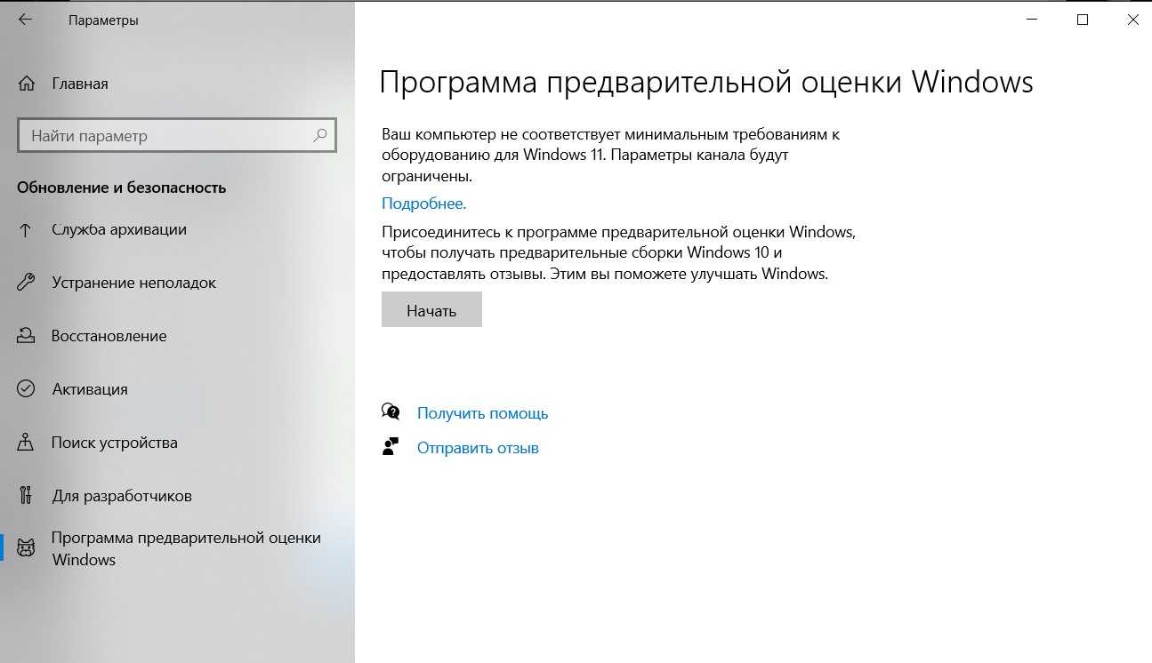 Так как наш портал старается писать обо всех новинках, вопрос установки Windows 11 даже не стоял. Но тут возникло сразу несколько проблем. Если зайти в «Параметры – Обновление и безопасность – Программа предварительной оценки Windows», то можно увидеть надпись о том, что «Ваш компьютер не соответствует минимальным требованиям к оборудованию для Windows 11»: