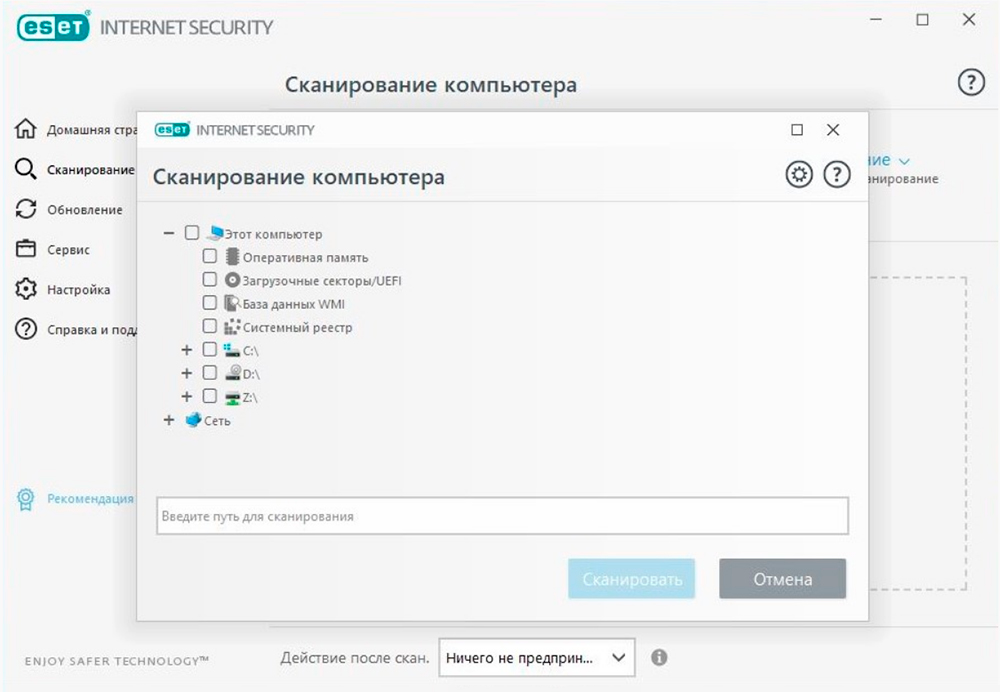 «Есет» предлагает сканировать на угрозы не только файлы на дисках, но и оперативную память с реестром