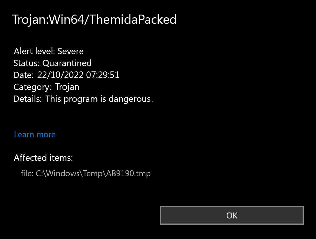 Is Trojan:Win64/ThemidaPacked dangerous?