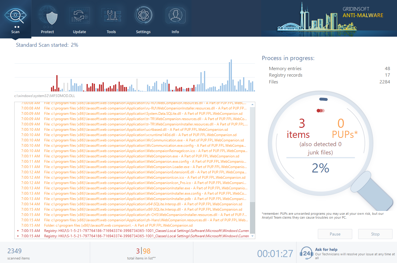 Why GridinSoft Anti-Malware? It is really light-weight and has its databases updated practically every hour. In addition, it does not have such problems and weakness as Microsoft Defender does. The combination of these facts makes GridinSoft Anti-Malware suitable for clearing away malware of any type.
