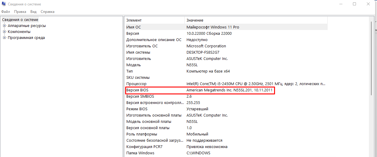 В открывшемся окне обращаем внимание на «Версия BIOS»
