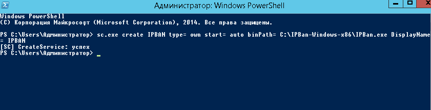 6. Теперь необходимо создать службу IPBan, чтобы приложение запускалось при старте системы и работало в фоновом режиме. Запустите оснастку PowerShell (Win + R,